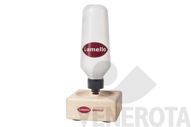 Contenitore per colla in plastica con pennellino.