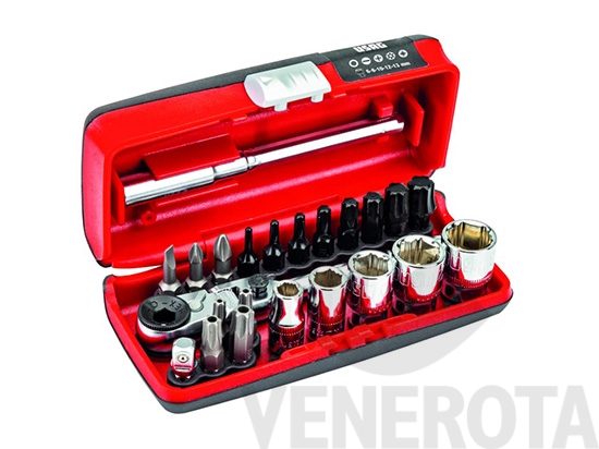 Cassetta completa di inserti e bussole manuali, indispensabile in ogni officina e perfetta per i progetti fai da te. 23 pezzi inclusi.
