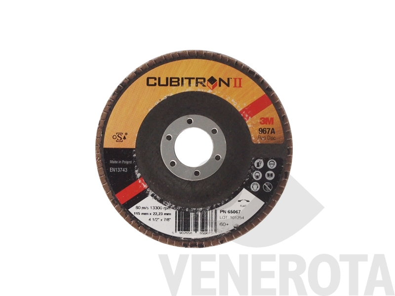 Disco lamellare per ferro Cubitron II 3M progettato per offrire prestazioni elevate nella levigatura e finitura di superfici metalliche. Grazie alla tecnologia Cubitron II, questo disco utilizza grani di ceramica a forma di triangolo che si auto-affilano, garantendo un taglio rapido e una lunga durata.