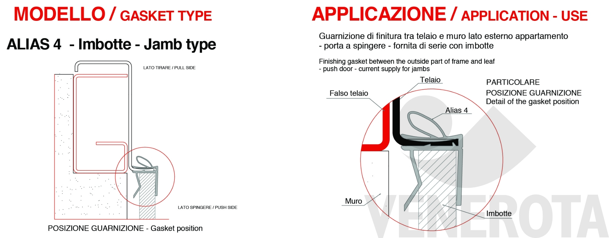 Kit imbotte Alias da applicare sul lato esterno della porta blindata per rifinire esteticamente il vano porta e garantire una perfetta copertura del telaio.