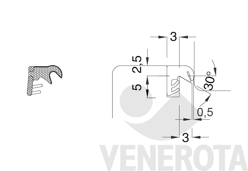 - Rivestimento duro sul dorso della guarnizione per facilitare l'installazione del profilo