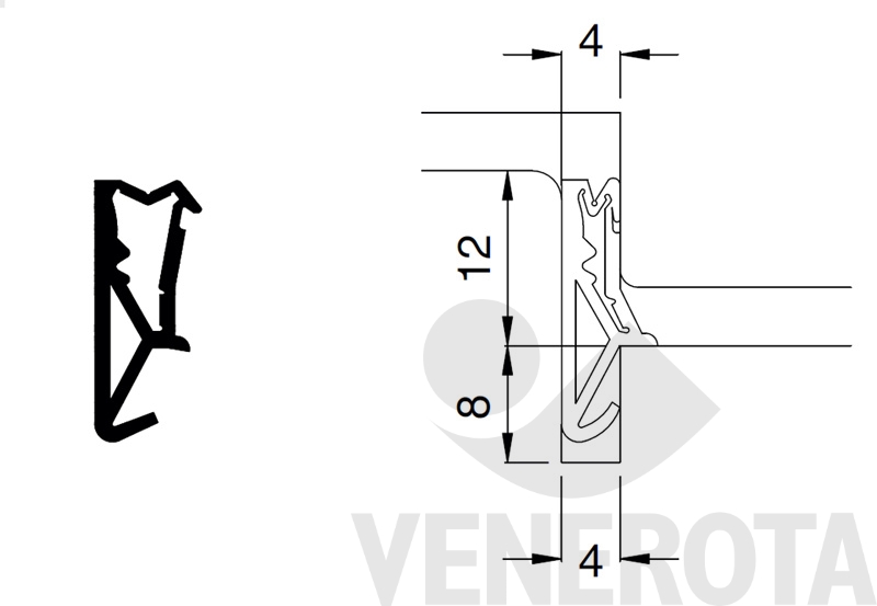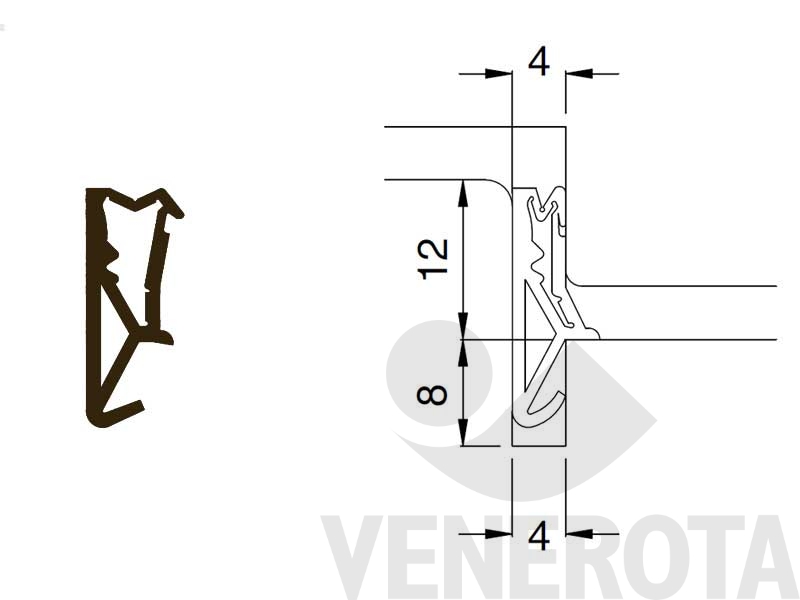 Guarnizione flessibile SV142a Deventer in elastomero termoplastico, da utilizzare su finestre e portefinestre in legno e legno-alluminio con battuta battente e centrale.