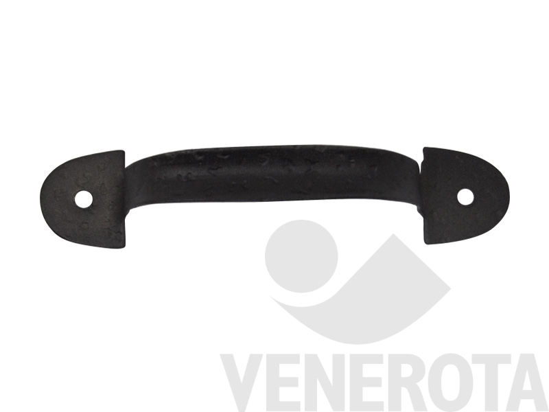 Maniglia con anello in ferro battuto con fori di fissaggio a vista, per persiane e scuri.