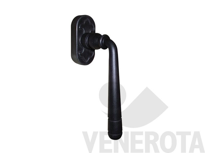 Maniglia Berna per porta Galbusera con rosetta e bocchetta stretta in ferro battuto.