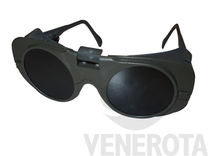 Occhiali da saldatore, da utilizzare per ridurre i danni causati dalle scintille della saldatura. Il design è ergonomico ad alto comfort con frontale ribaltabile.