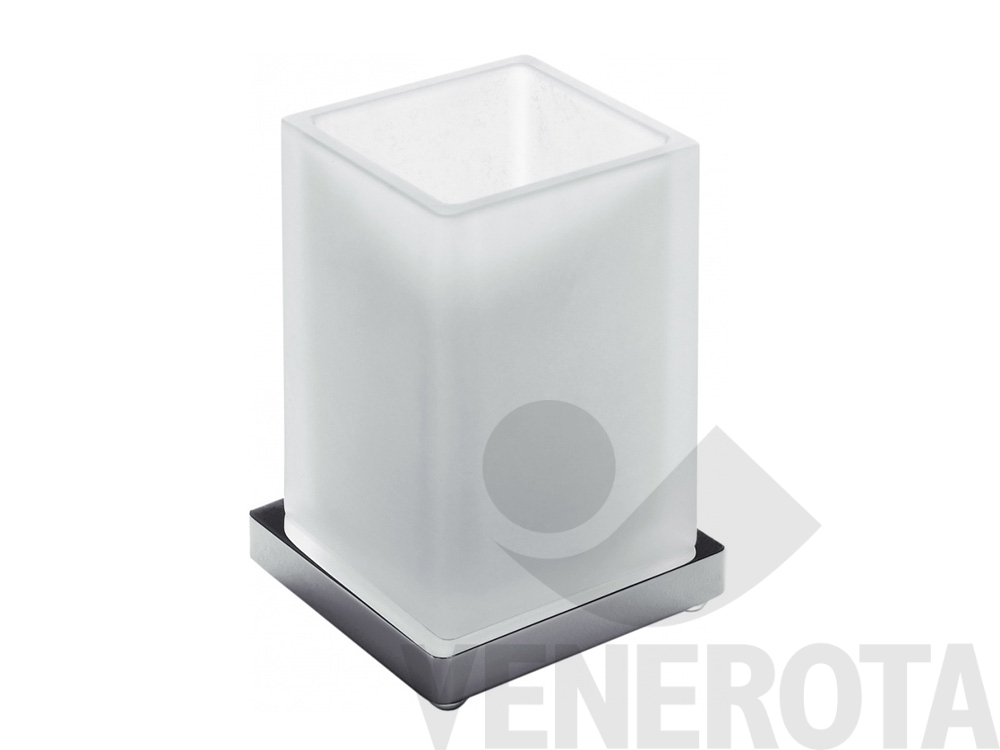 Porta bicchiere da appoggio realizzato in ottone cromato, ideale per organizzare spazzolini e accessori sul piano lavabo.