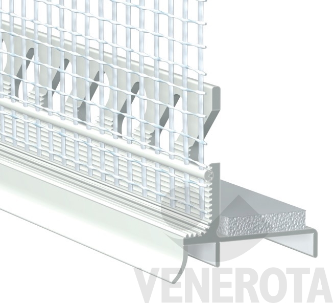 Profilo adesivo con rete Maico per intonacatura, da utilizzare come supporto durante la posa e in abbinamento ai profili per falsitelai. Viene utilizzato per gestire l'intonaco nella giunzione tra il falsotelaio e il rivestimento a cappotto in spalla, in previsione di inevitabili movimenti di porte e finestre.