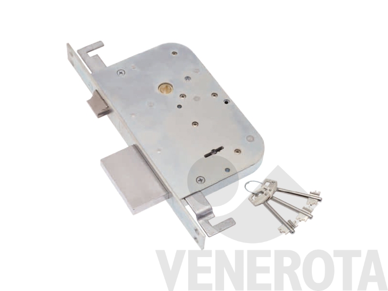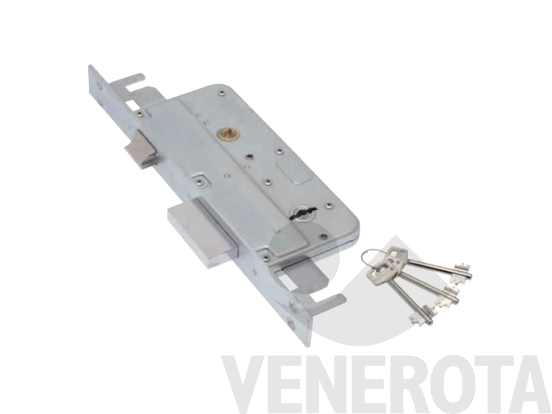 Serratura a doppia mappa con bordo quadro, a 2 mandate, dotata solo di catenaccio.