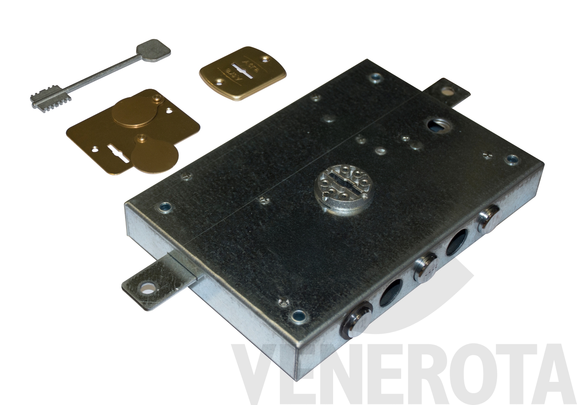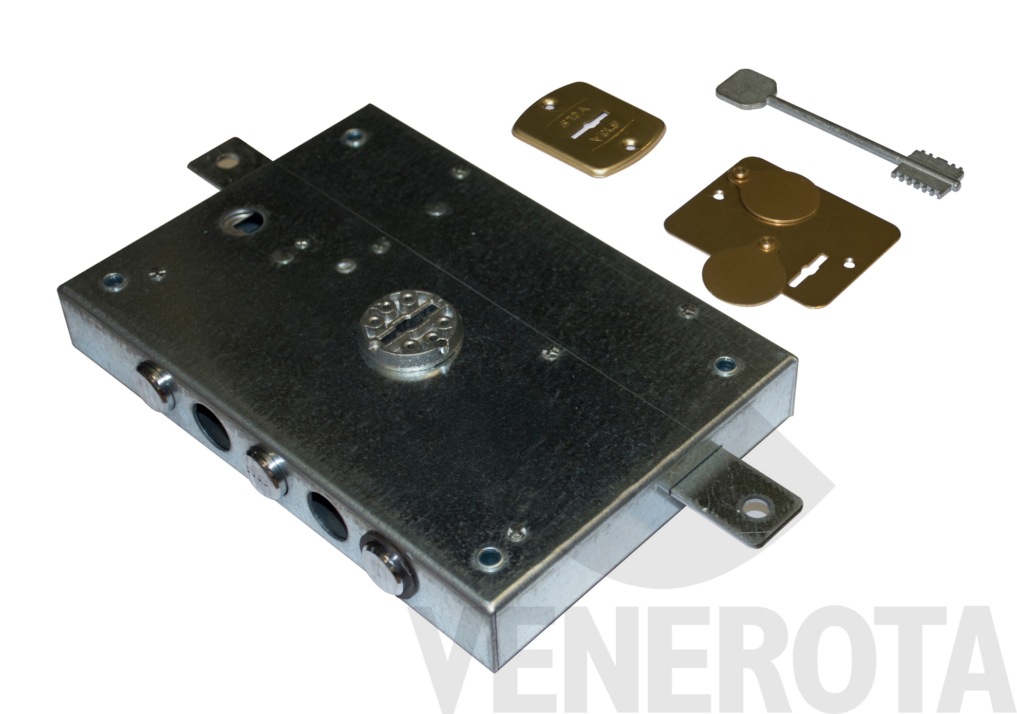 Serratura triplice ad applicare a doppia mappa Dierre di ricambio per porte blindate, senza scrocco. In caso di smarrimento della chiave, acquistare il blocchetto e sostituirlo.
