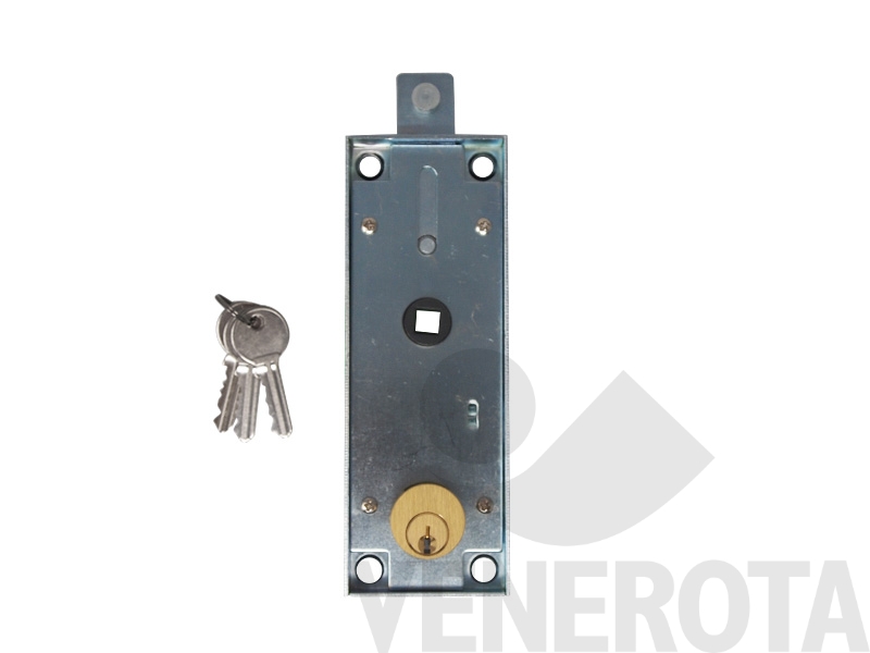 Serratura verticale centrale a cilindro Securemme, ideale per la chiusura sicura delle serrande, offre protezione affidabile contro i tentativi di effrazione.