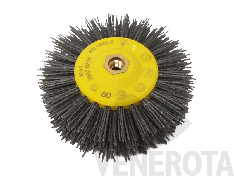 Spazzola abrasiva circolare per smerigliatrice rotativa, ideale per strutturare e pulire sia superfici, che profili.