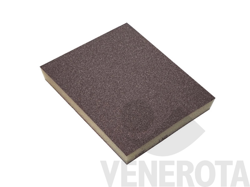 Spugnetta abrasiva ideale per lavorazioni di sgrossatura e finitura sia a secco che umido di legno, vernici, stucchi e plastica.