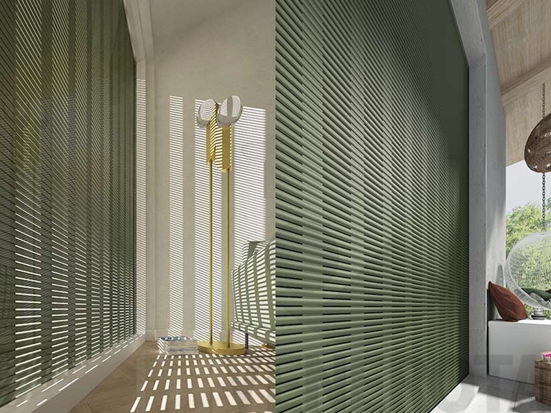Minimal è una tapparella dal design essenziale a foro largo, realizzata in alluminio coibentato. La stecca da 16 mm offre luce, aria, vista esterna e avvolgimento ridotto.