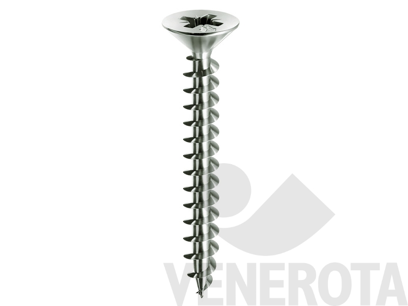 Viti con impronta Pozidriv con filetto totale o parziale, disponibili in diverse misure. Impronta ad elevata profondità per consentire un ottimo accoppiamento, mentre la punta filettata offre una presa sicura senza slittamenti.
