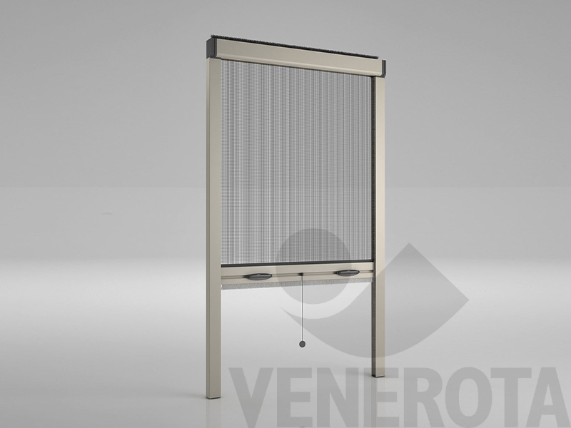 Mini è una zanzariera compatta con rete in fibra di vetro, pensata per ottimizzare lo spazio. Facile da montare grazie alle testate con molle che sorreggono il cassonetto durante l'inserimento delle guide, senza necessità di fissarlo. Le guide antivento trattengono saldamente la rete, anche in presenza di forti correnti d’aria, garantendo una protezione efficace.